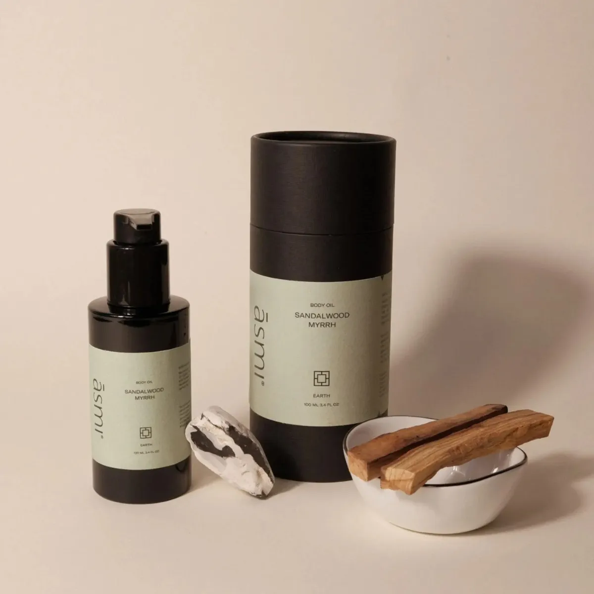 ASMI Ayurveda Body Oil Sandelholz & Myrrhe är en närande kroppsolja utvecklad för att skydda huden och ge intensiv återfuktning. Produkten bygger på ayurvedisk kunskap och har ekologisk sesamolja som bas, en klassisk ingrediens inom traditionell hudvård. Oljan passar dig som vill stärka hudens barriär och samtidigt skapa en lugnande daglig ritual.