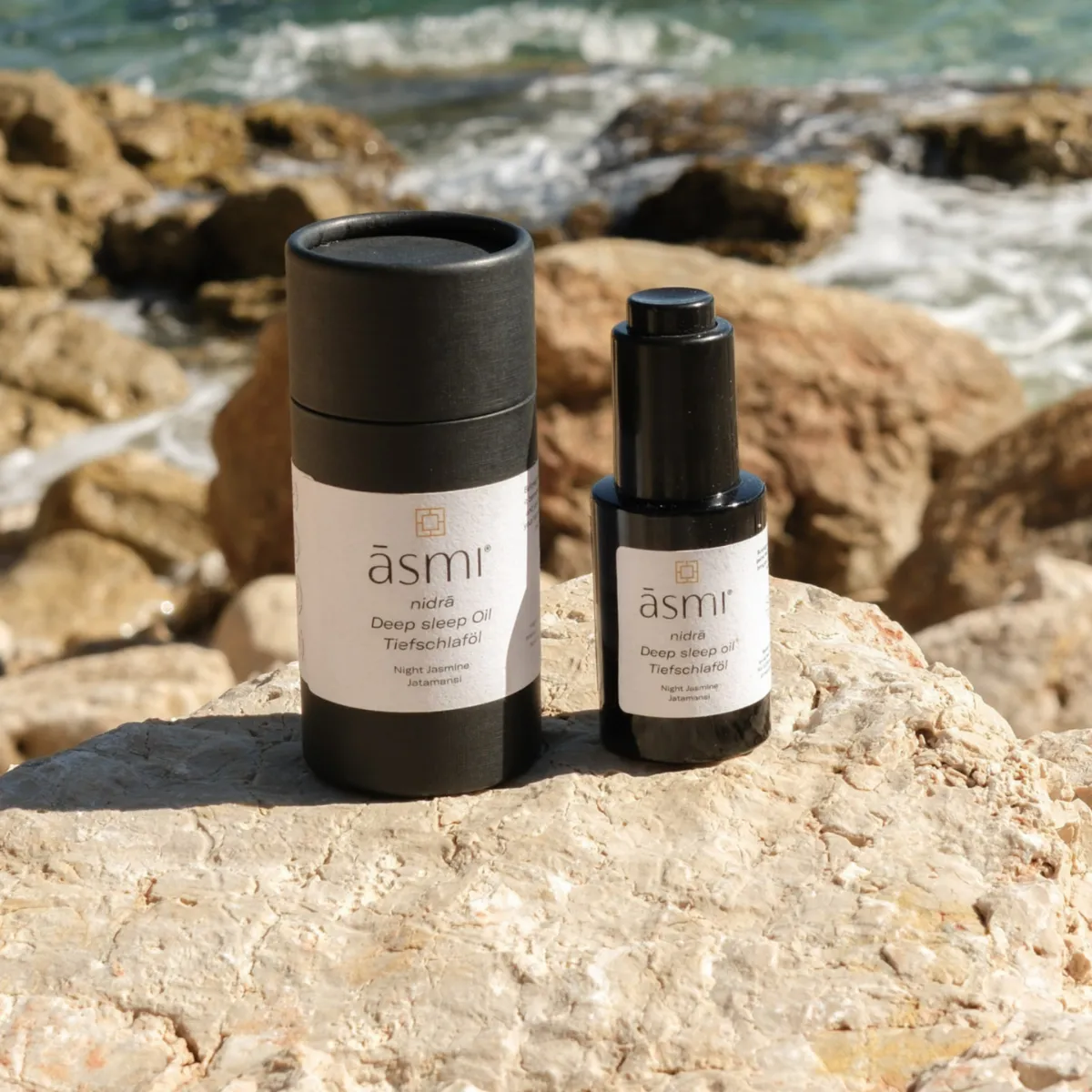 Inom Ayurveda betraktas sömn som en av hälsans tre grundpelare, tillsammans med kost och livsenergi. Asmi Deep Sleep Oil är framtagen utifrån denna syn och används för att skapa ett lugnt övergångstillstånd mellan dag och natt. Regelbunden användning hjälper kroppen att associera doft och beröring med vila.