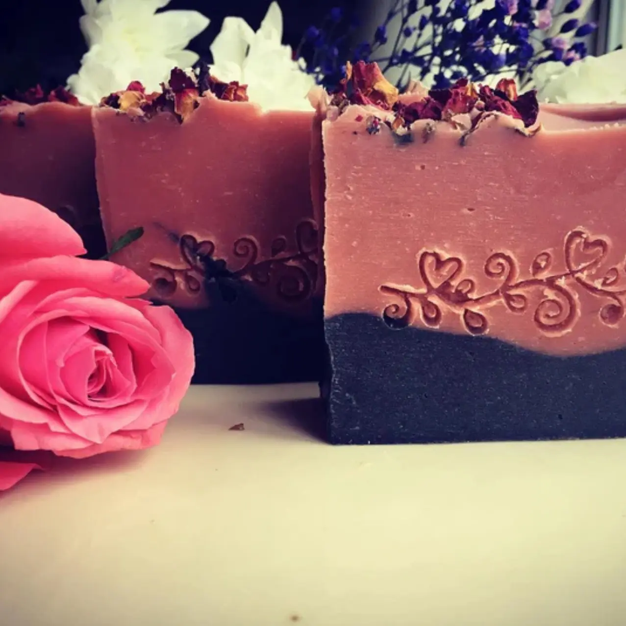 Varje tvålkaka är toppad med en dekorativ torkad rosenknopp, vilket gör den lika vacker att se på som den är effektiv att använda. Den är tillverkad i Irland, plastfri, palmoljefri och helt biologiskt nedbrytbar – ett medvetet val för både kropp och miljö. En perfekt gåva eller lyxig detalj i din dagliga rutin.