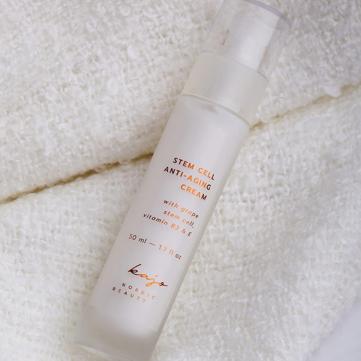 Kajo Anti-Aging Cream är en effektiv anti-age ansiktskräm med druvstamceller som hjälper huden att se fastare, slätare och mer ungdomlig ut. Med Kajo Anti-Aging Cream får huden intensiv näring, förbättrad elasticitet och en synbart jämnare hudton, samtidigt som fina linjer gradvis mjukas upp.