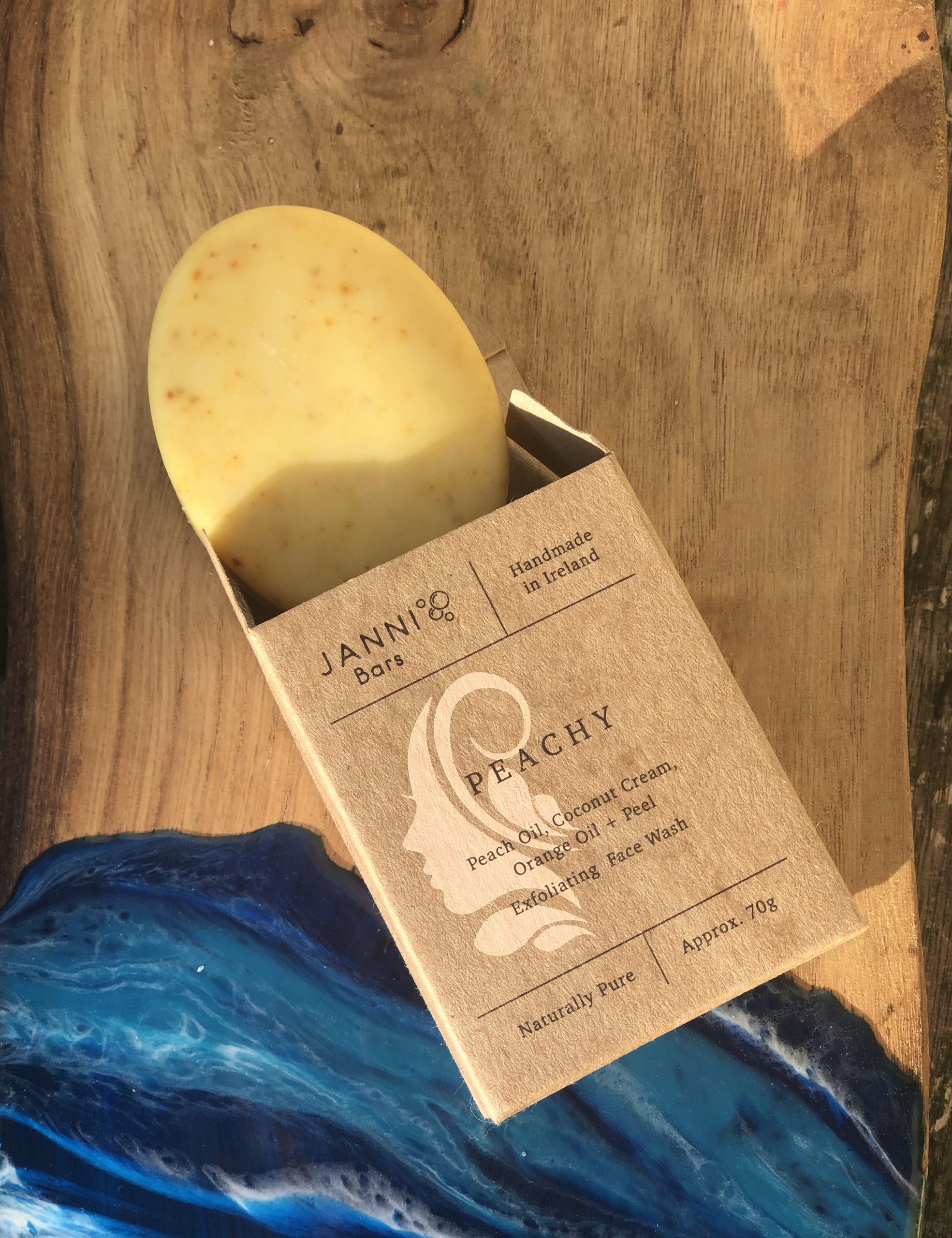 En skonsam men effektiv exfolierande ansiktstvål berikad med persikokärnolja och apelsinskal. Persikokärnolja återfuktar utan att kännas fet och är rik på antioxidanter, vitamin C och E som hjälper till att motverka ålderstecken. Apelsinskal ger en mild exfoliering som gör huden mjuk, slät och strålande. Passar alla hudtyper, även mogen hud.