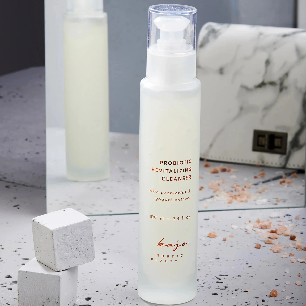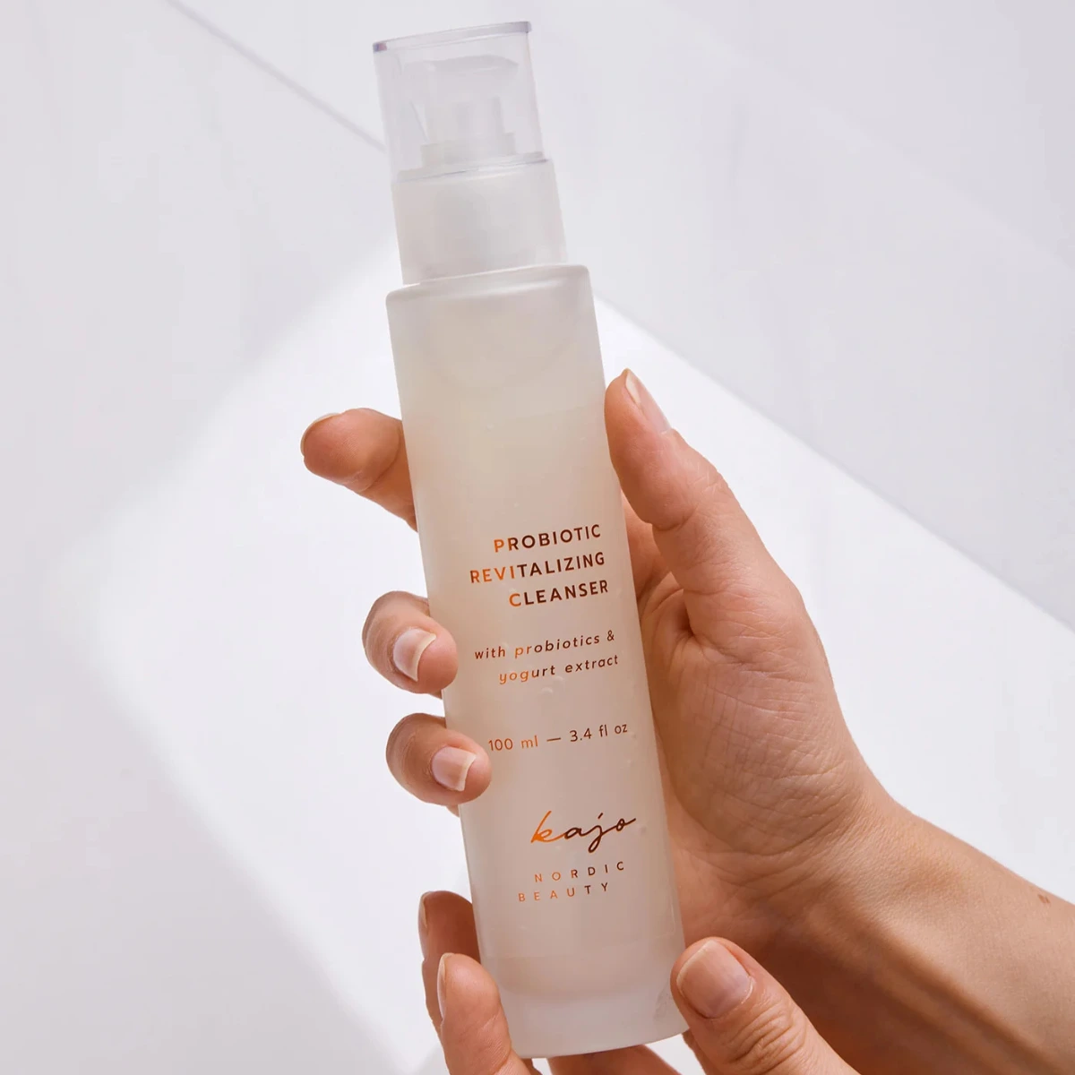 Kajo Probiotic Revitalizing Cleanser är en probiotisk ansiktsrengöring som stödjer hudens naturliga förnyelse och bidrar till en jämnare, klarare hudton. Produkten är framtagen för daglig användning och passar alla hudtyper, inklusive mogen och känslig hud. Formulan rengör effektivt utan att störa hudens skyddsbarriär och lämnar huden fräsch, mjuk och balanserad.