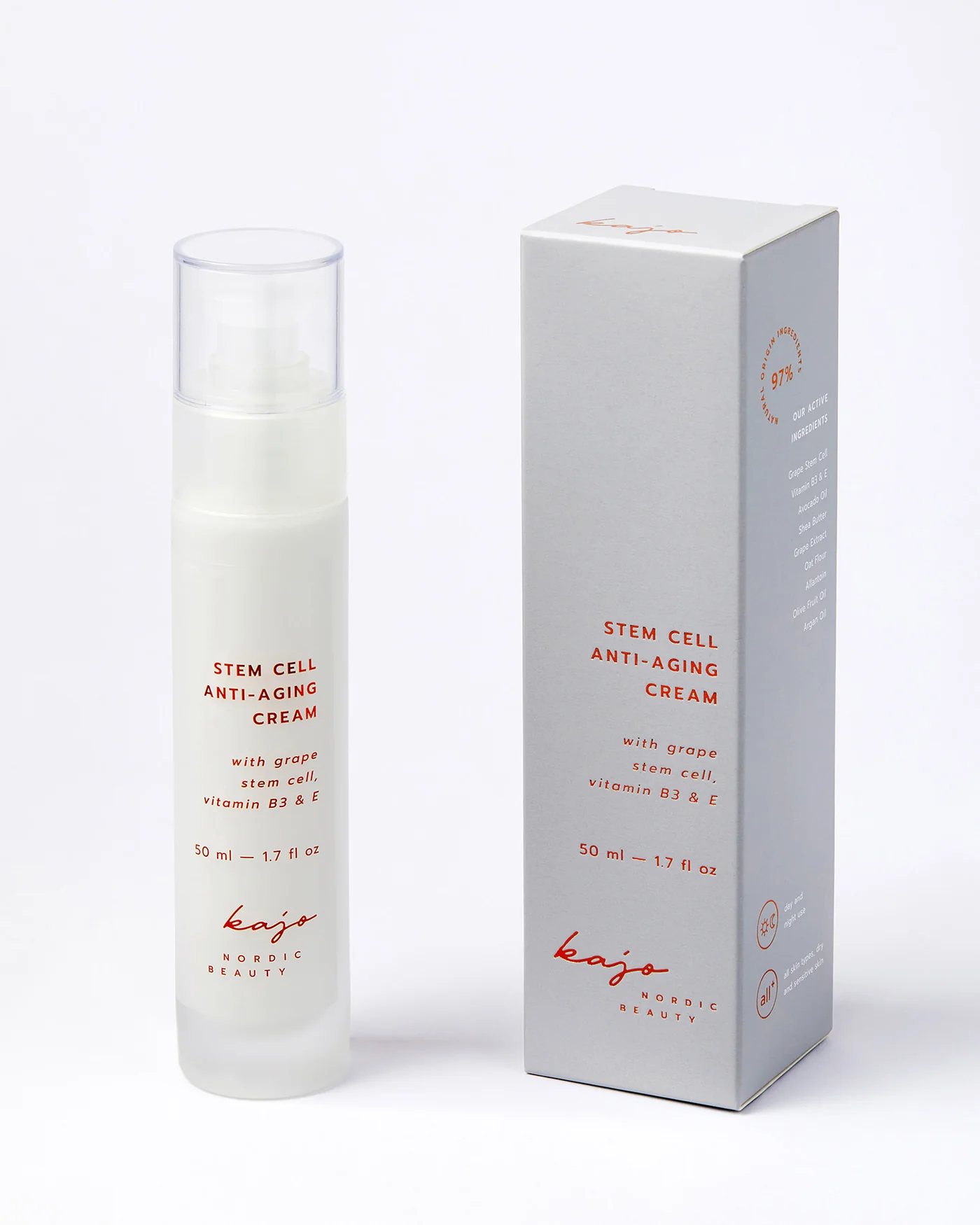 Kajo Stem Cell Anti-Aging Cream is a luxurious daily moisturizer that enhances your skin’s natural renewal process. Formulated with grape stem cells, niacinamide (Vitamin B3), and nourishing plant oils, it helps smooth fine lines and deep wrinkles while evening out hyperpigmentation. This cream boosts radiance, firms, and restores skin for a healthier, more youthful appearance.