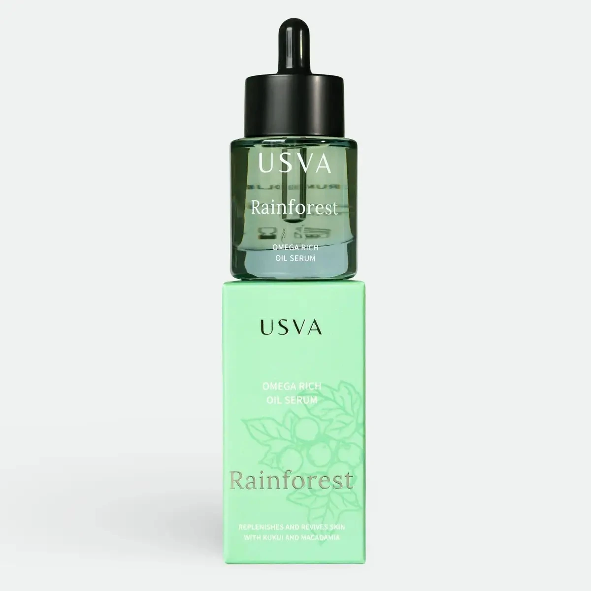 USVA Rainforest Omega Rich Oil Serum är en omega-rik ansiktsolja som ger huden långvarig fukt, skydd och smidighet. Serumet kombinerar noggrant utvalda regnskogsoljor med hög halt av essentiella fettsyror som stödjer hudens naturliga balans. Formulan är rik men lätt, vilket gör den behaglig att använda dagligen utan att kännas tung på huden.